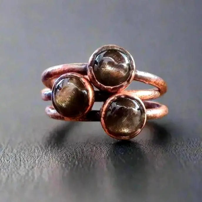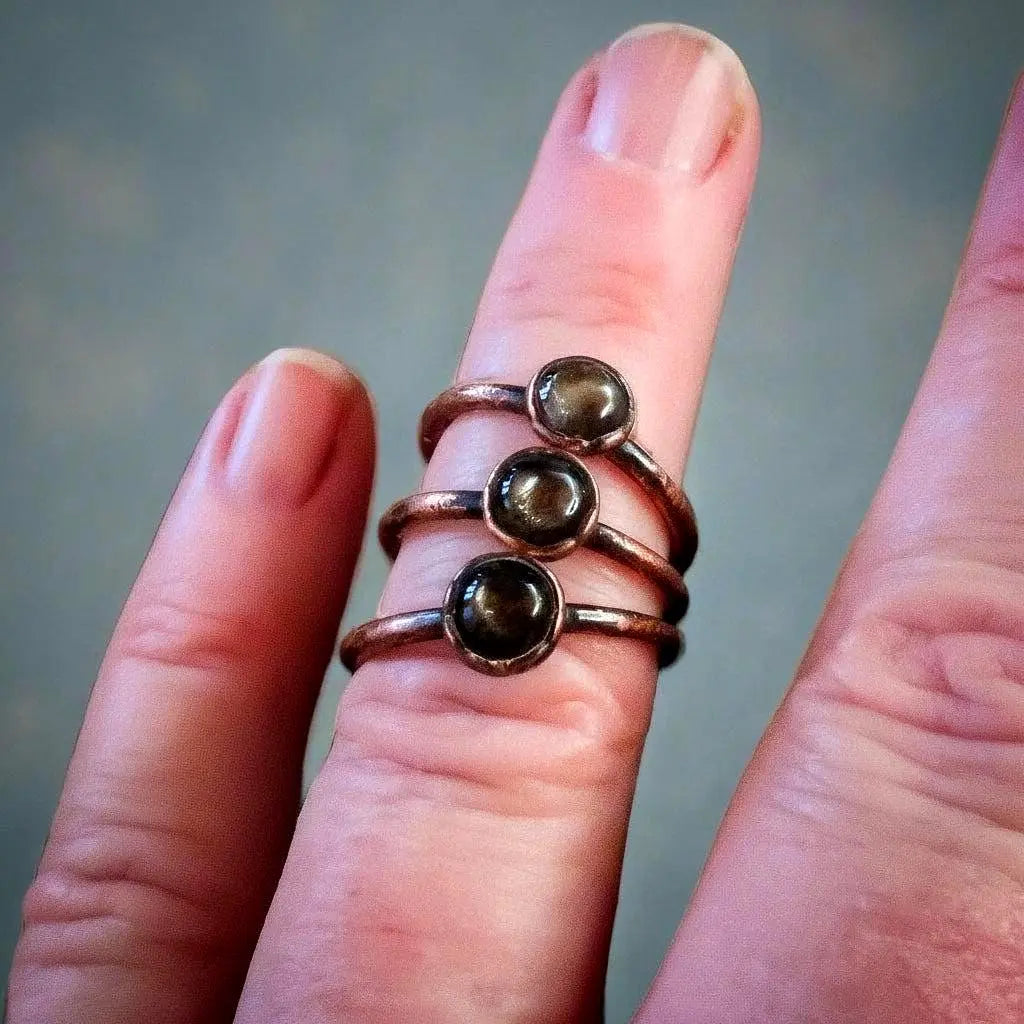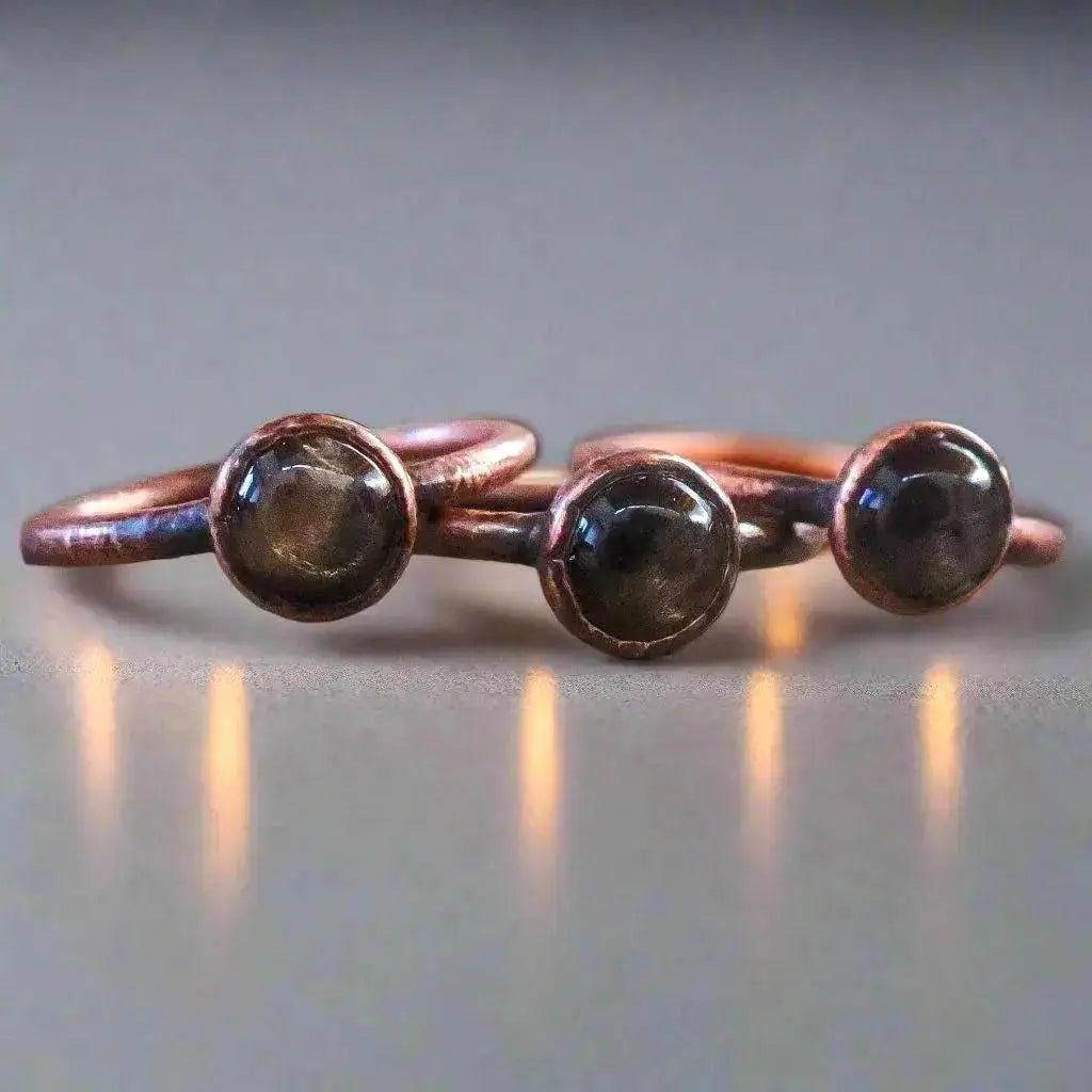 Black Moonstone Ring — Handcrafted Copper Talisman Jewelry