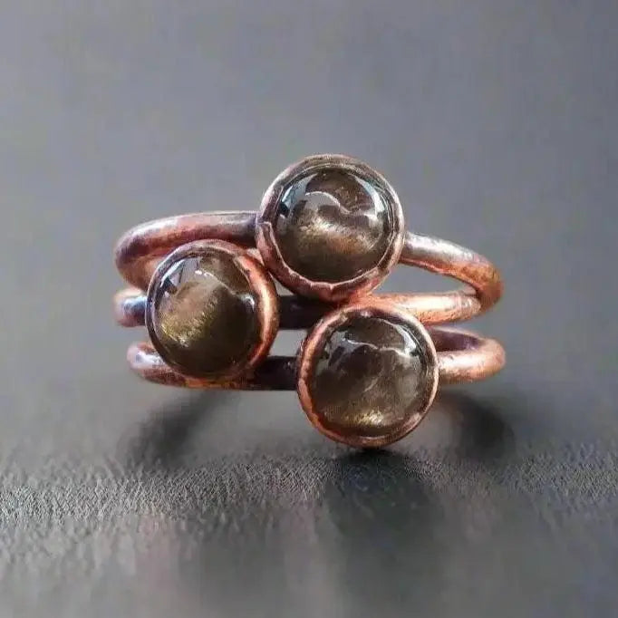 Moonstone is relatively soft and has a delicate cleavage, so treat this handcrafted ring gently to avoid impacts. The copper will develop a beautiful living patina over time—polish with a soft cloth if you prefer brightness. Cleanse energetically by placing in moonlight (especially during the full moon), on selenite, or with sage smoke. Black moonstone is a stone of intuition and new beginnings, so cleanse your moonstone ring regularly to maintain its mystical energy.