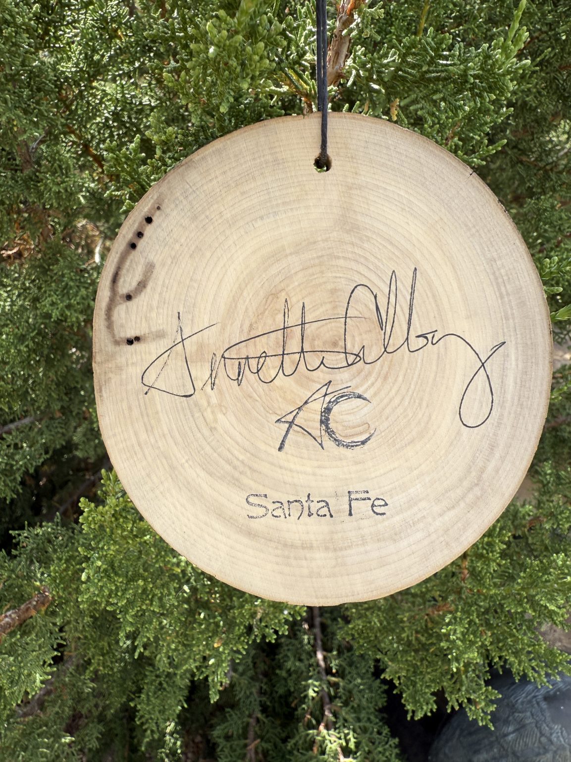 Your painted Aspen Slice arrives signed on the back, stamped with a Santa Fe logo, and in a beautifully wrapped gift box.