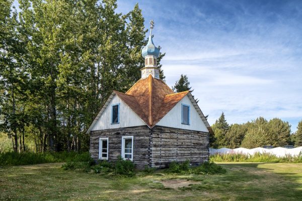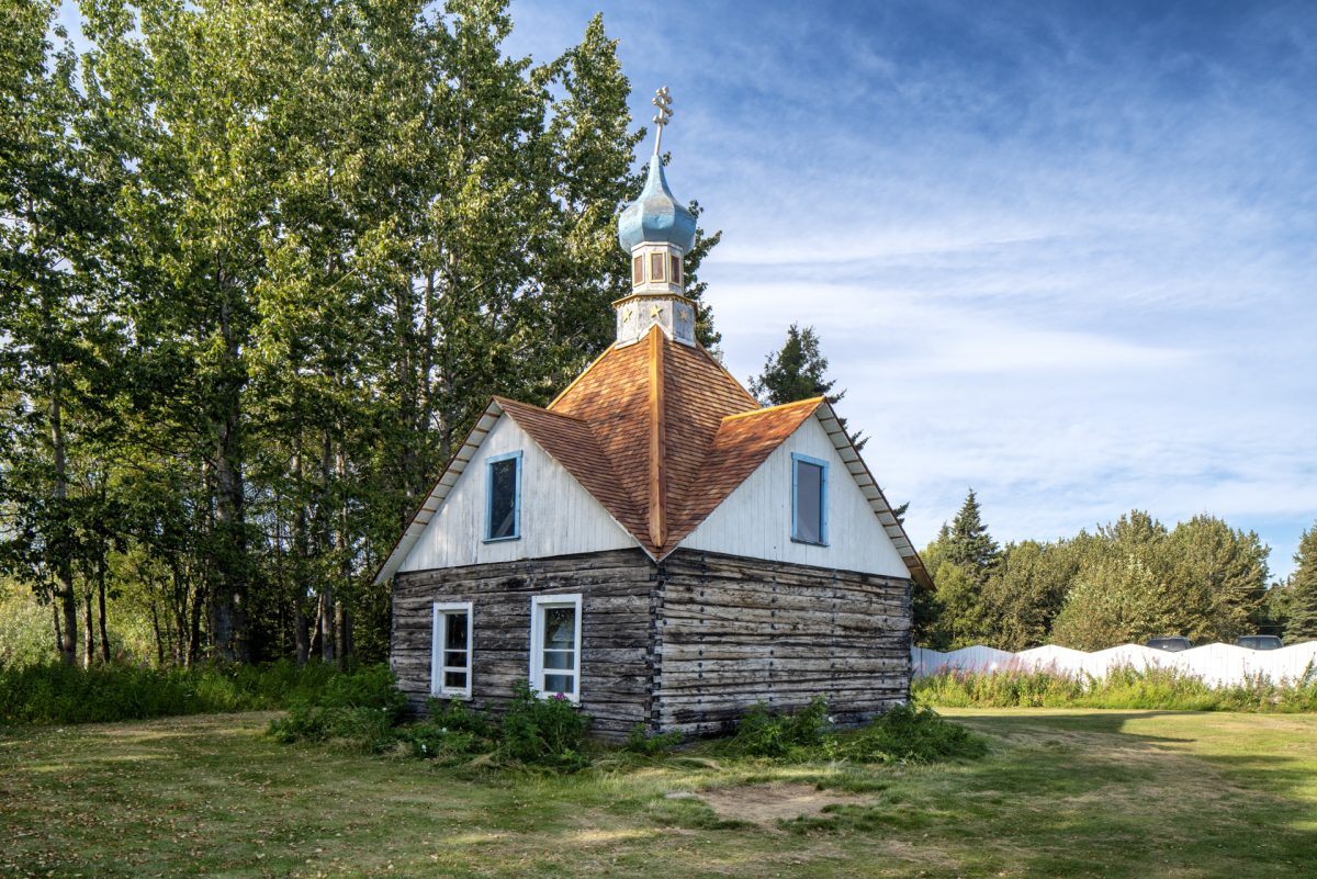 A Color Archival Pigment print of the Chapel of St. Nicholas 1906, located in Kenai, Alaska, and taken in 2019. The print is 8X12 inches and in a 22X26 inch frame.