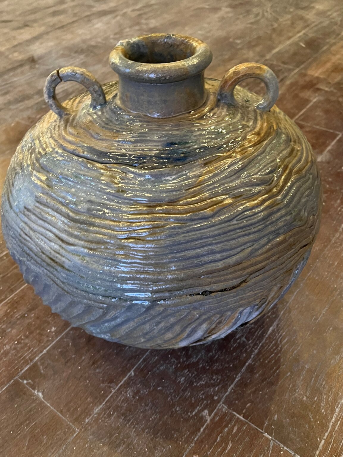 Coil handled Marvel vase hand-built by Marvel Bartlett