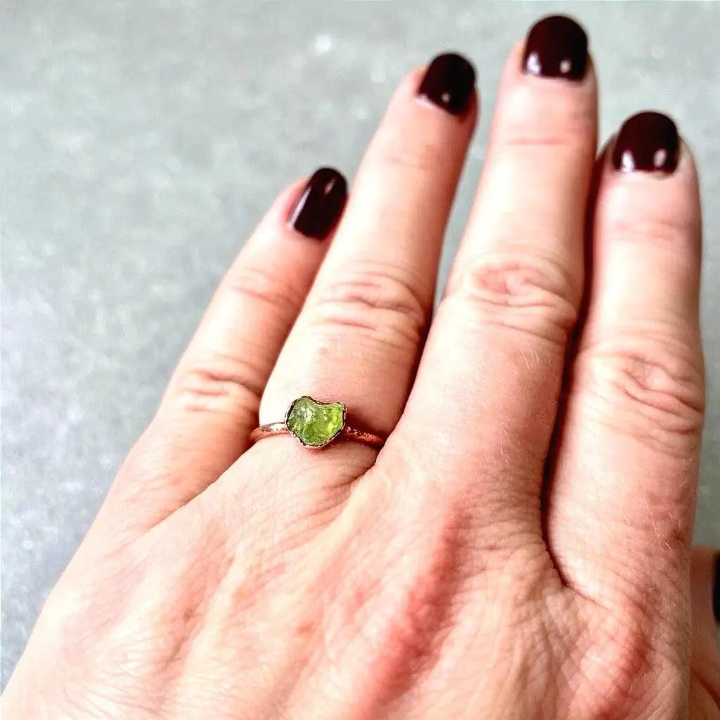 Wear this raw peridot ring when you need mental clarity and optimistic energy for important decisions, during times when you’re releasing old emotional patterns, or anytime you want to radiate earthy confidence and joy. It’s perfect for August birthdays, anyone working on forgiveness and emotional healing, and those who want to attract abundance with a grateful heart. Many customers wear their raw peridot rings daily as clarity talismans that keep them optimistic, clear, and radiantly grounded.