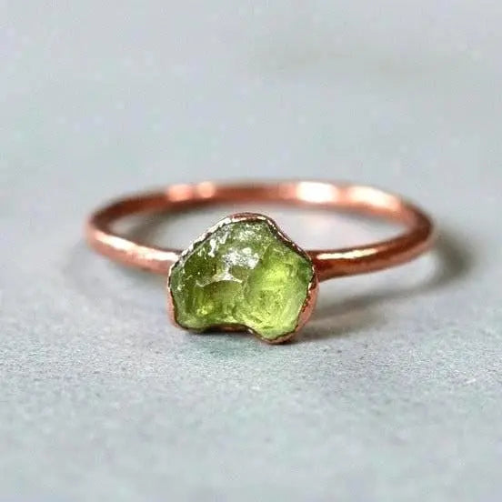 Peridot is relatively soft, so treat this handcrafted ring gently to avoid impacts and scratches. The copper will develop a beautiful living patina over time—polish with a soft cloth if you prefer brightness. Cleanse energetically by placing in sunlight (peridot loves solar energy), on selenite, or with sage smoke. Peridot is a stone of clarity and optimism, so cleanse your peridot ring regularly to maintain its vibrant, uplifting energy.