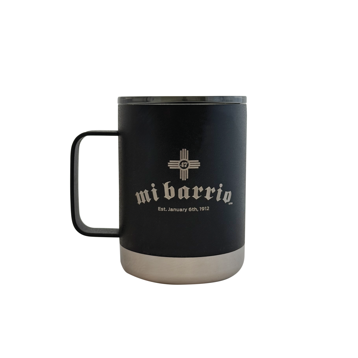 ”Mi Barrio” is now laser etched on your soon to be favorite travel mug. Made of lightweight 18/8 food-grade stainless steel that is non-leaching and will not retain taste or odor. The double-wall technology prevents condensation on the outside for those hot New Mexico days while keeping the heat or cold within the inner wall for hours. A splash-proof pressure fit slide lid makes it ideal for your everyday coffee cup and fits most car cup holders.