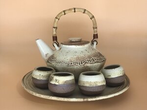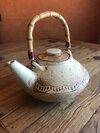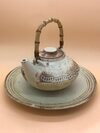 Genie’s Lamp Teapot set in yellow salt with bamboo handle. Set includes teapot, platter, and 2 cups.