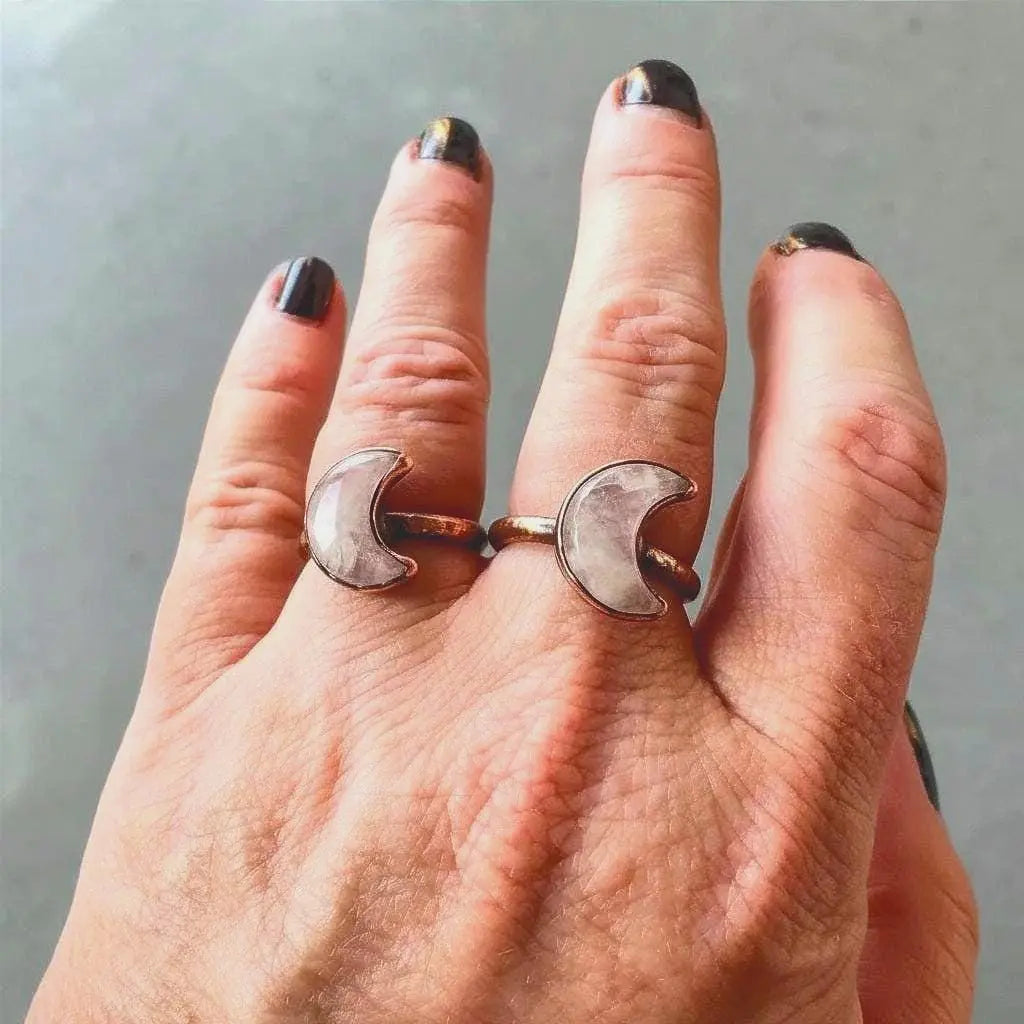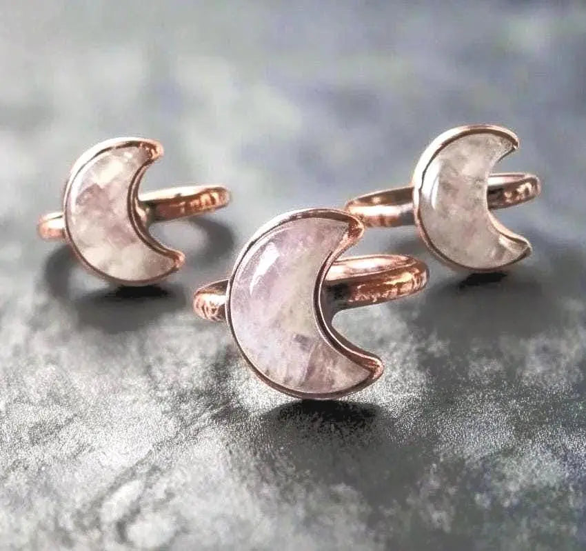 Short Description: Handcrafted in copper with a raw kunzite crescent, this talisman ring channels gentle love energy and emotional clarity through earth-wrought metal and mindful design for everyday ritual and grounding.