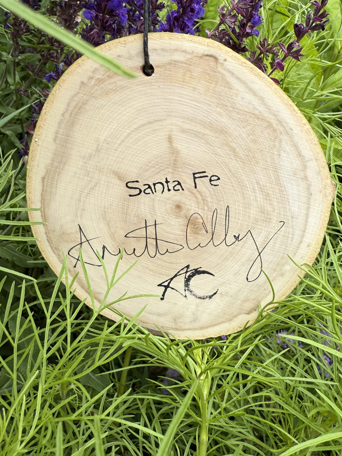 Your painted Aspen Slice arrives signed on the back, stamped with a Santa Fe logo, and in a beautifully wrapped gift box.