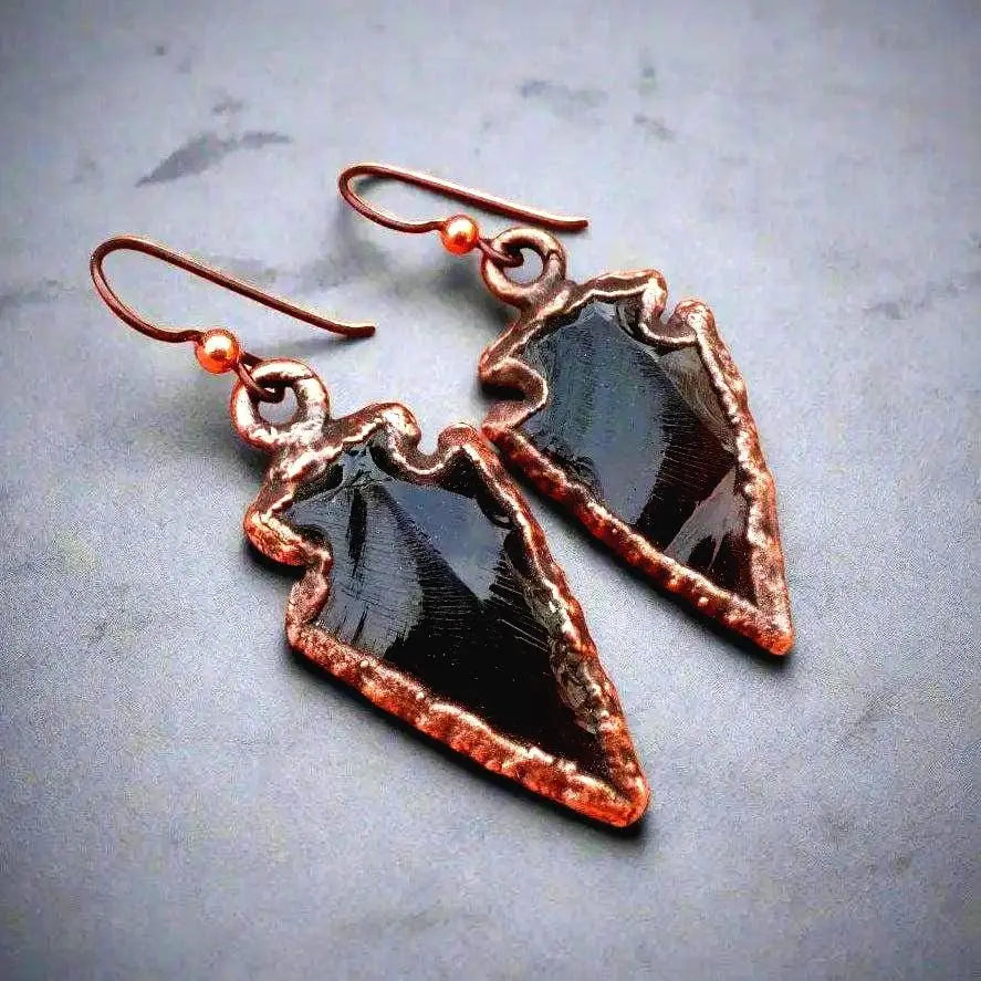 Obsidian Arrowhead Earrings — Handcrafted Copper Talisman Jewelry