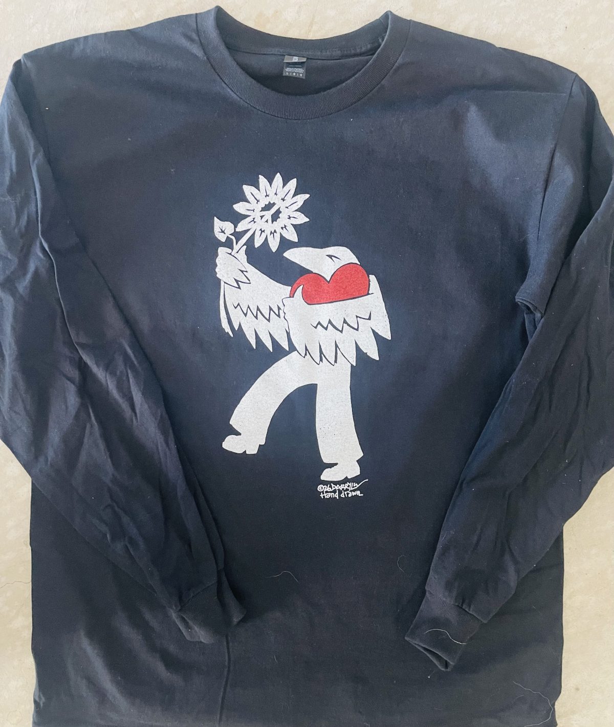 Created from inspiration of a life size metal sculpture by Darryl, he re-created this image as his form of Unity, Community and JOY! Printed on 100% longsleeve cotton unisex cut.