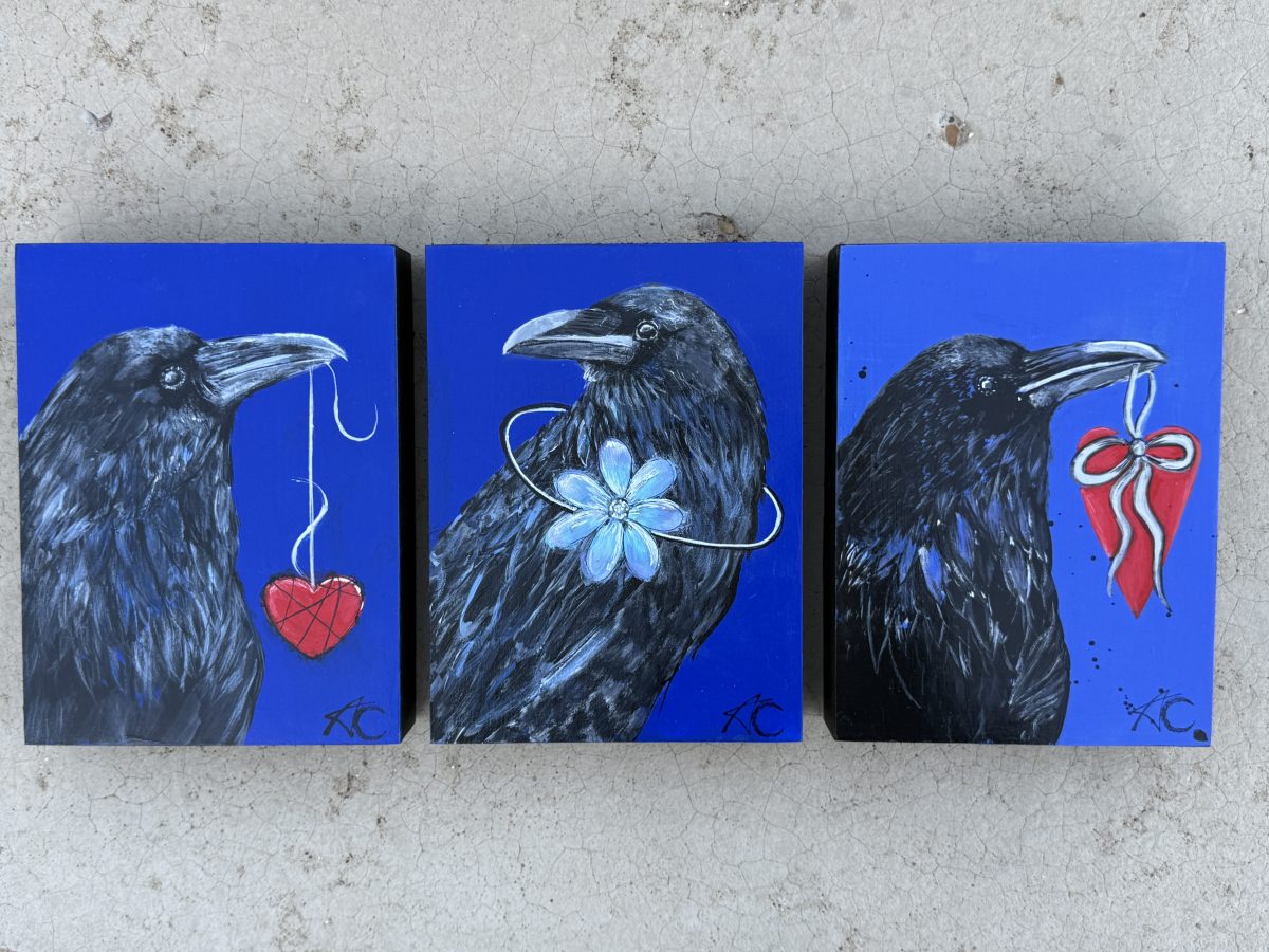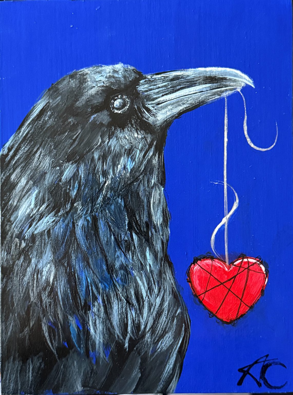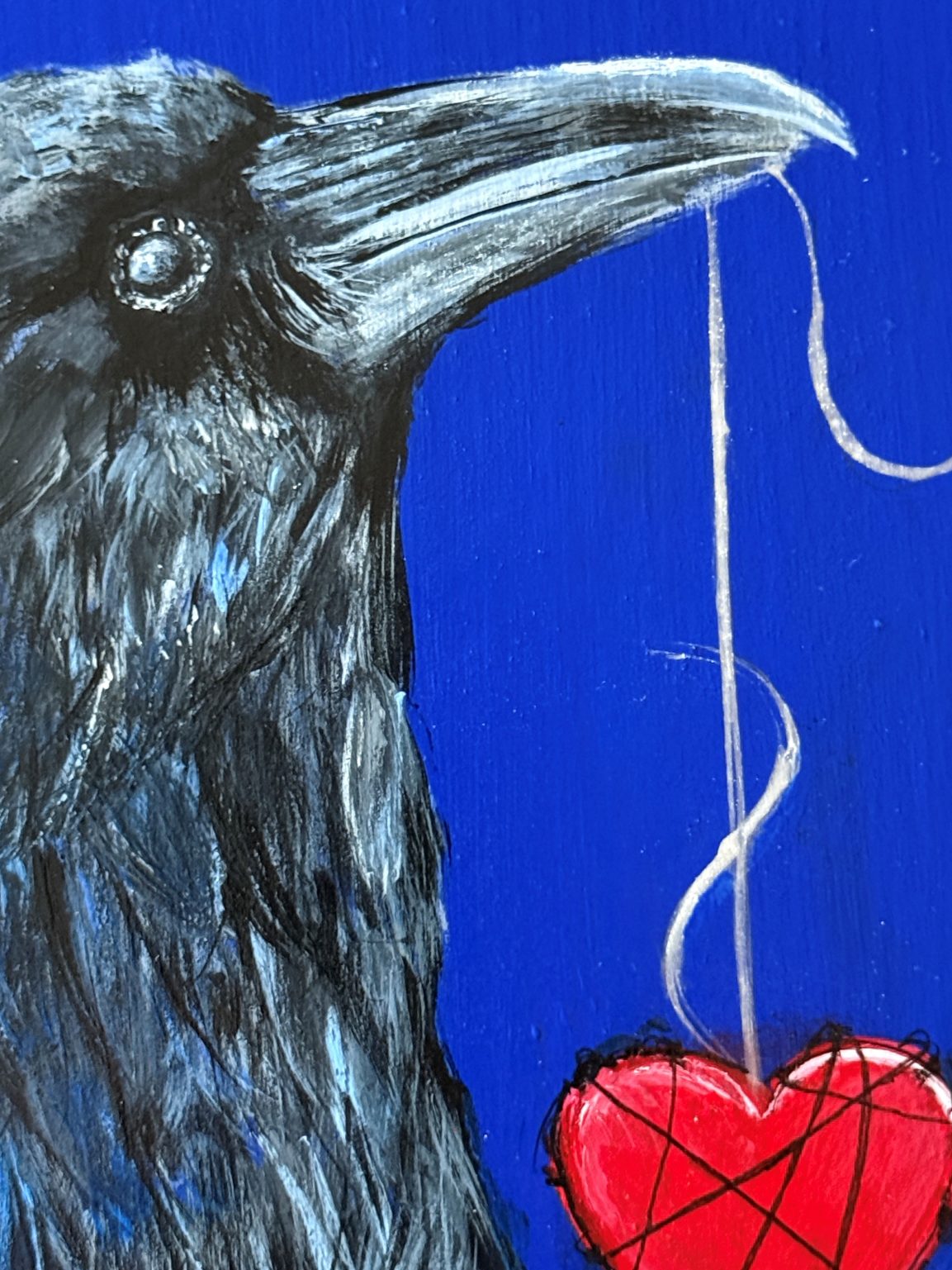 Pure Love was born from those quiet moments on the ranch when ravens gather near — their dark wings gleaming blue in the desert light. I’ve always felt they carry messages of remembrance and renewal, bridging earth and spirit. As I painted, I imagined the raven gently holding love itself — a symbol of how we keep tending the heart through every joy, loss, and transformation. This piece reminds me that love, once given, never fades; it simply expands, circling back in new and unexpected ways.