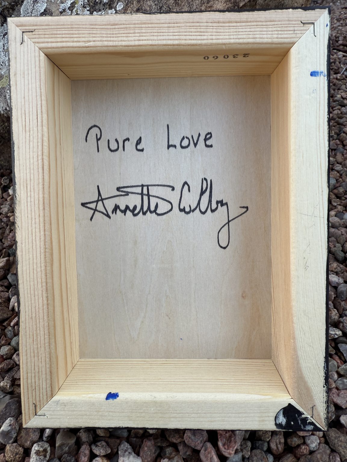 Whether placed on a shelf, resting on a table, or hanging on a wall, Pure Love carries quiet power and warmth into any space. It speaks to the beauty of openness, the courage to feel deeply, and the grace that lingers long after love has taken flight. Signed and titled on the back.