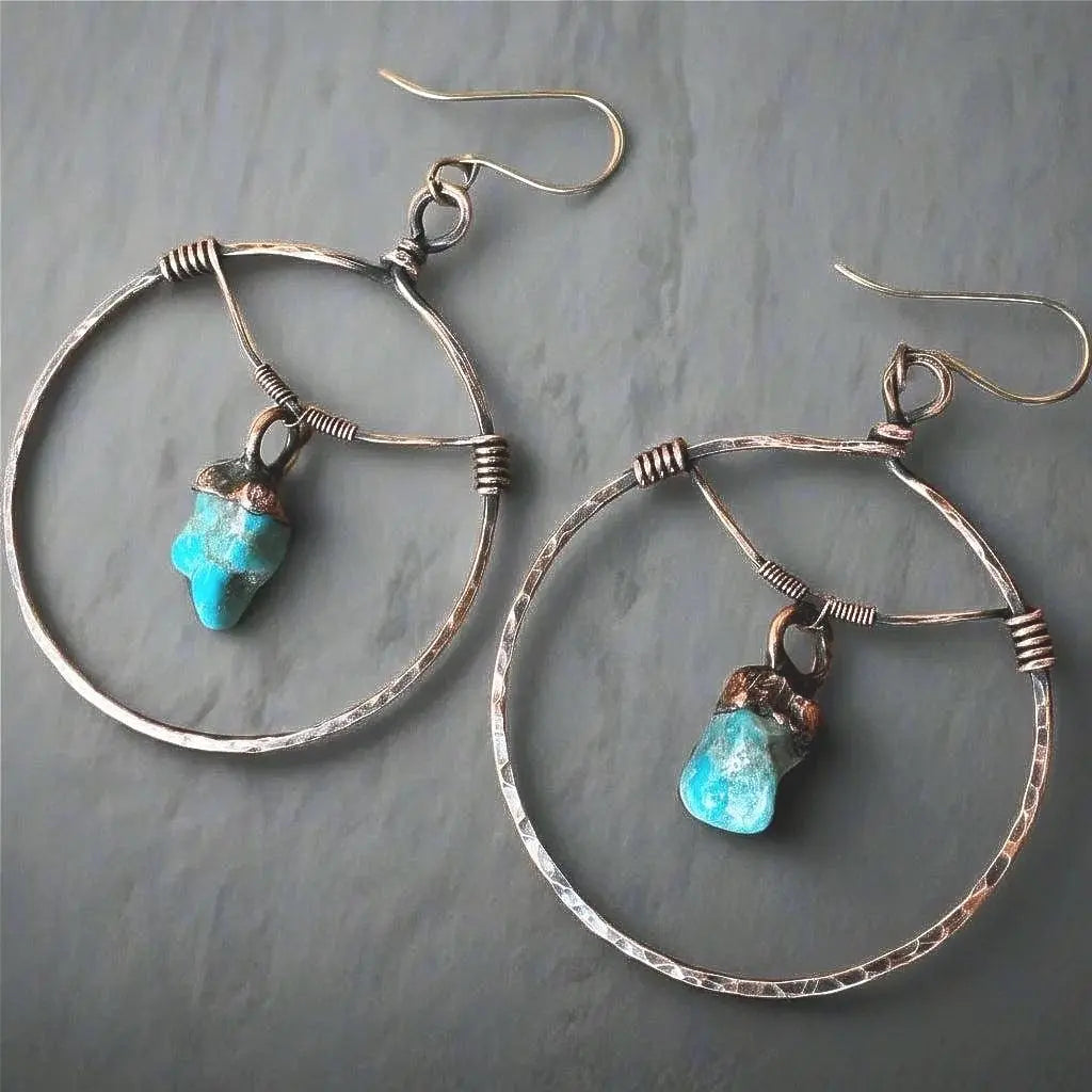 Raw Turquoise Hoops — Bohemian Jewelry Handmade by Blackbird & Sage