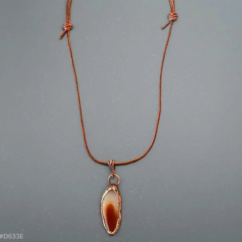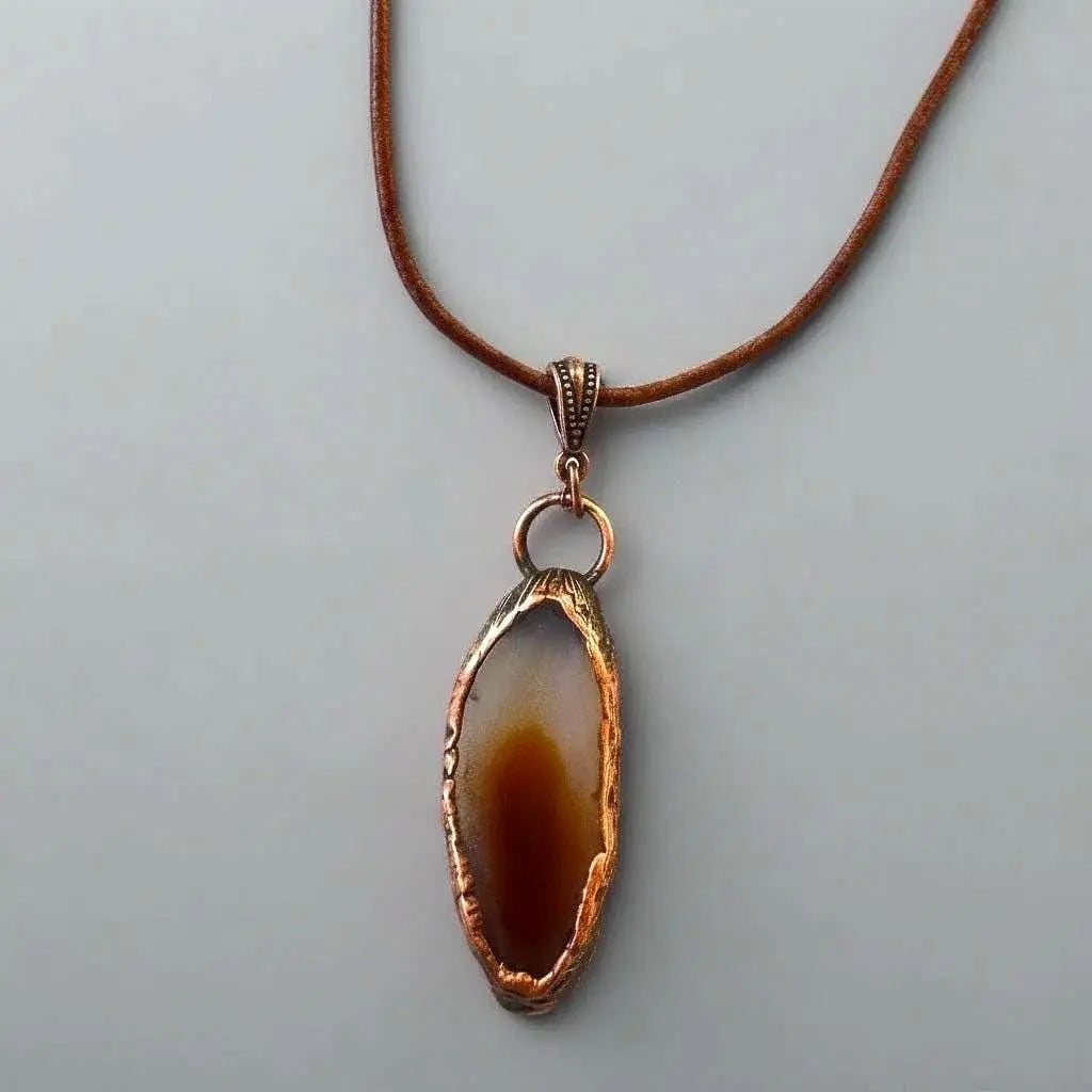 Handcrafted in copper with a genuine Red Agate slice, this pendant anchors grounded confidence and steady presence for daily ritual and mindful living — earth-honed materials meeting deliberate, wearable energy.