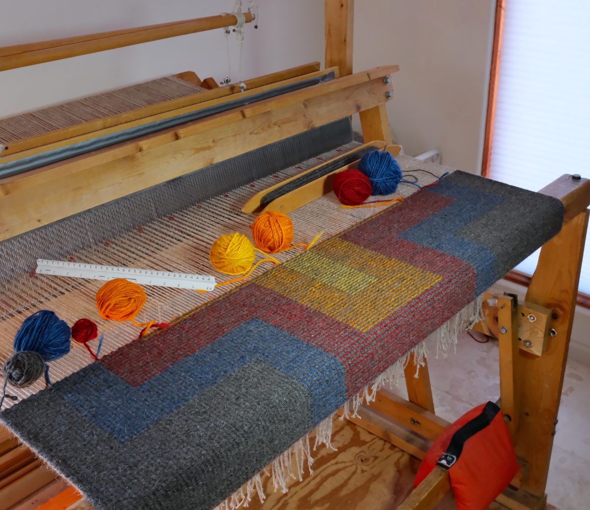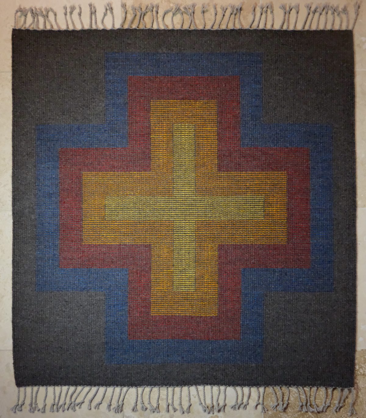 Southwestern, hand dyed, hand woven rug. 100% Navajo-Churro wool. Weight: 5 pounds. Mothproof.