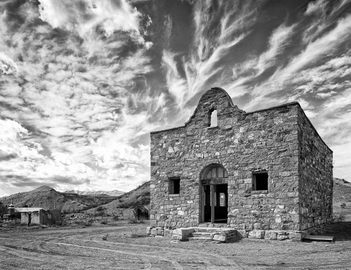 Palladium print of a Schoolhouse taken in Riley, New Mexico, in 2006. The print measures 10X13 inches in a 16X20 inch black frame.