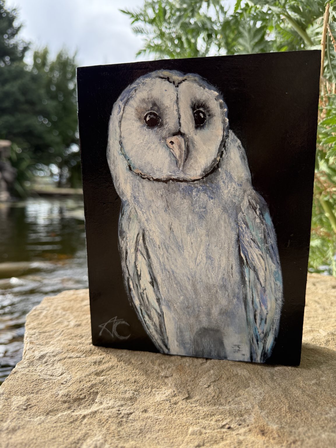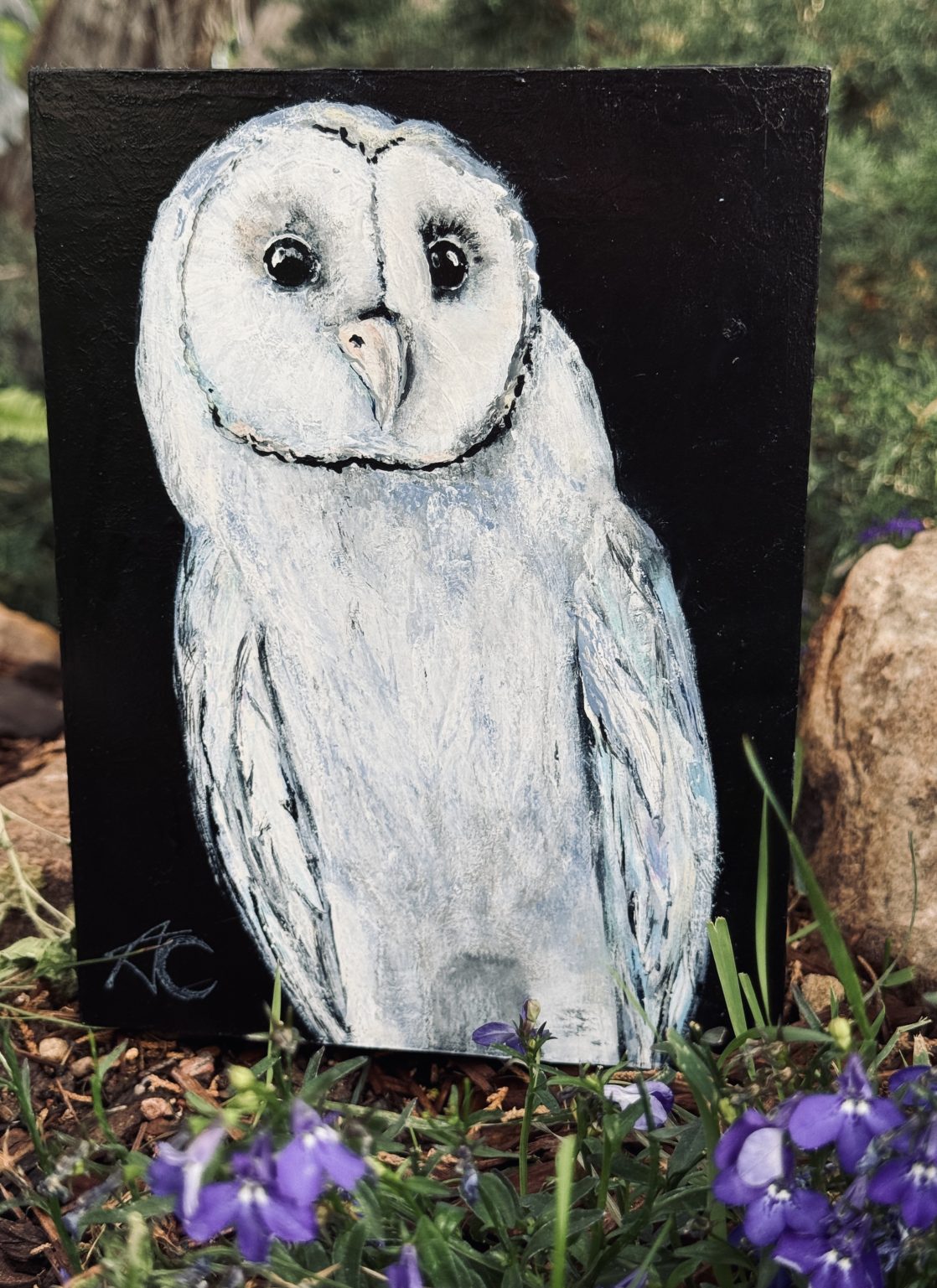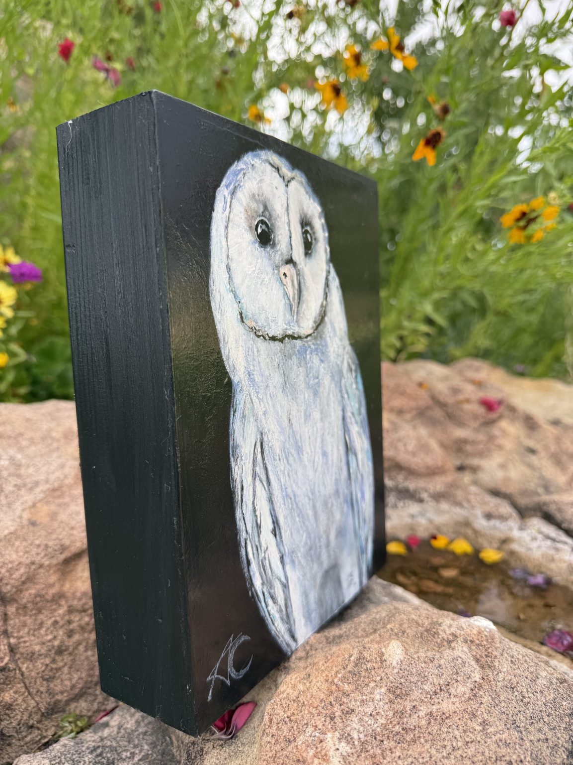 This painting makes a meaningful gift for anyone who feels connected to nature and inspired by the wisdom of the owl — a symbol of intuition, clarity, and gentle strength. Each brushstroke carries the quiet mystery and luminous grace these magnificent beings embody. Display it on a bookshelf, windowsill, or hang it on the wall to invite a sense of calm, insight, and soulful beauty into any space.