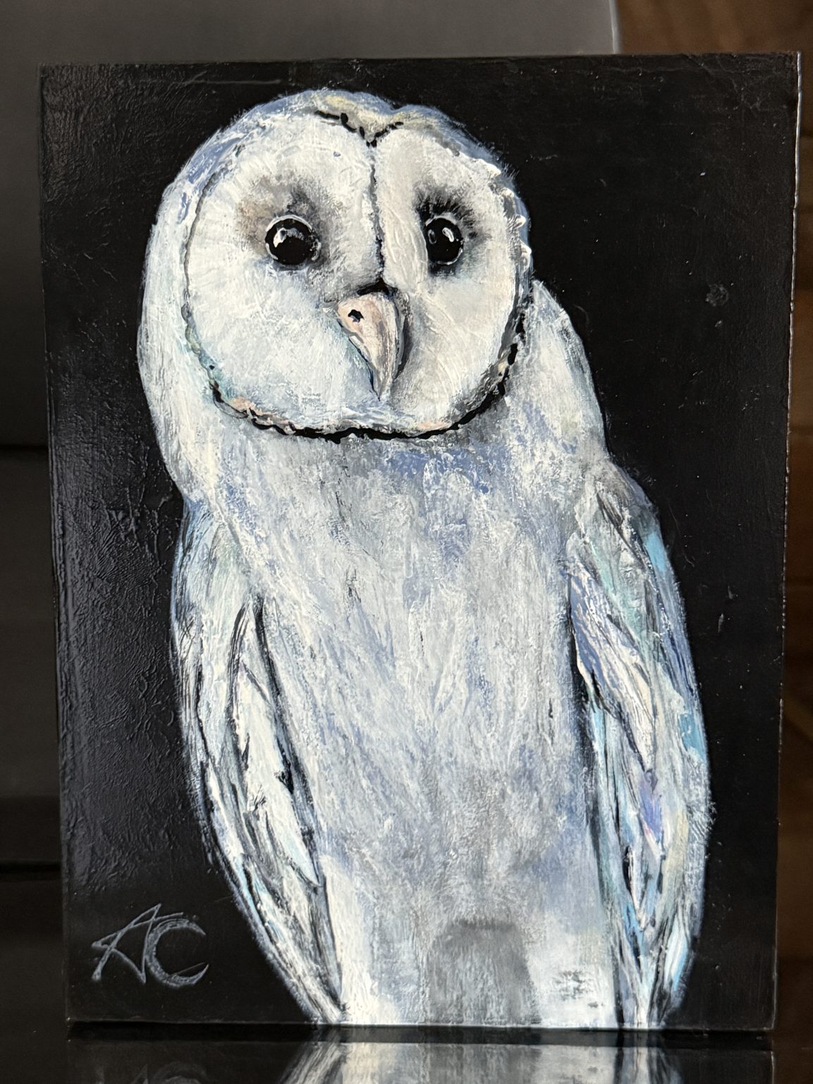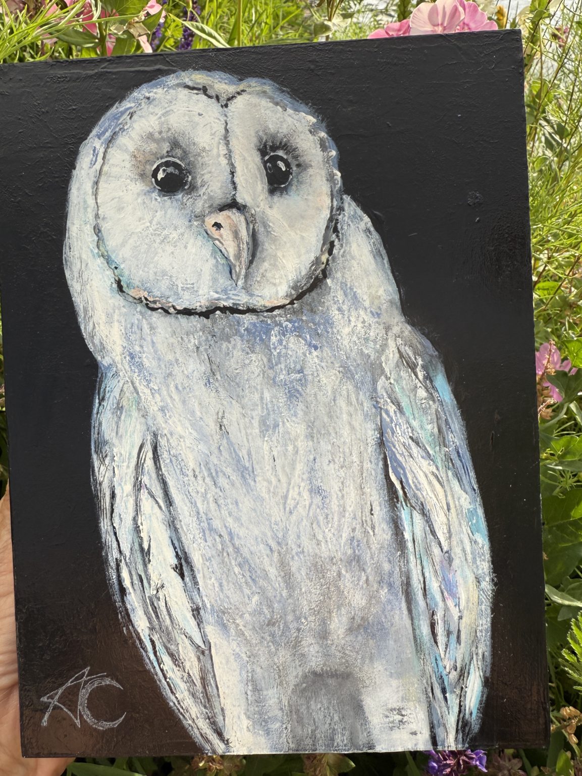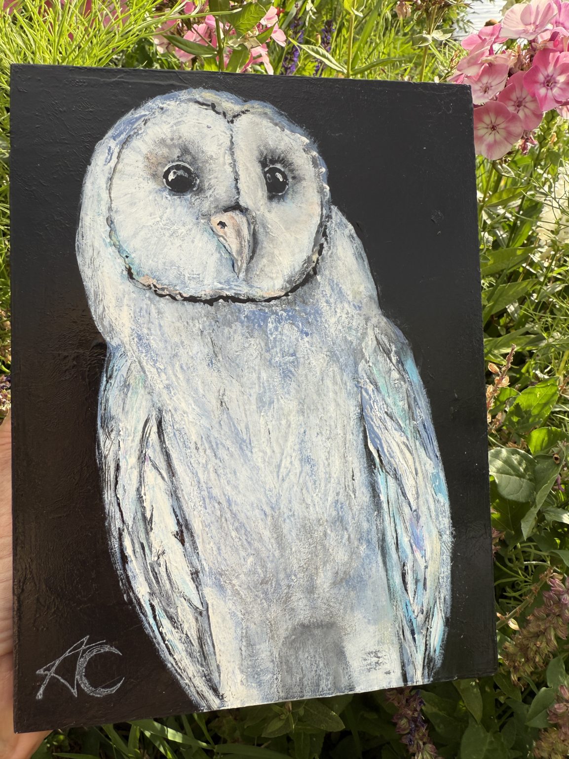 This painting makes a meaningful gift for anyone who feels connected to nature and inspired by the wisdom of the owl — a symbol of intuition, clarity, and gentle strength. Each brushstroke carries the quiet mystery and luminous grace these magnificent beings embody. Display it on a bookshelf, windowsill, or hang it on the wall to invite a sense of calm, insight, and soulful beauty into any space.