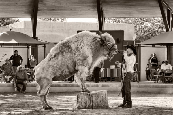 A Palladium Print of a White Buffalo, taken at the 2012 New Mexico Expo (State Fair), in Albuquerque, New Mexico. The print measures 8X12 inches in a 16X20 inch black frame.