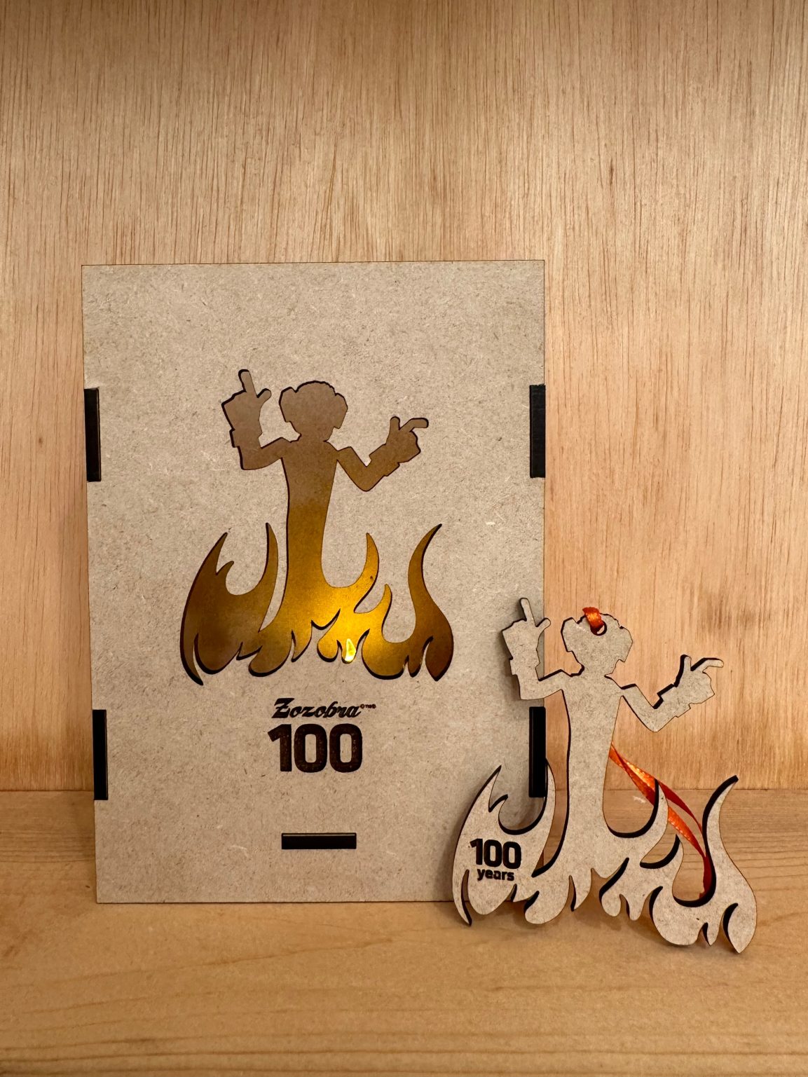 • Cut out Zozobra silhouettewith laser engraved “Zozobra 100”